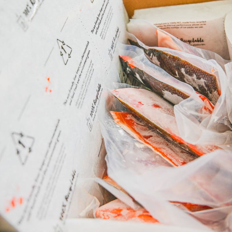 Harvested at the source in the world's most regenerative salmon fishery, Eva’s Wild sockeye salmon has a lower carbon footprint per serving than nearly any animal based protein on the planet.
